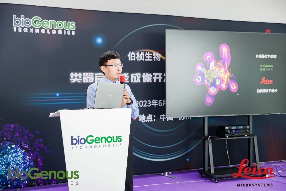 签约仪式之后,伯桢生物联合创始人、市场总监胡浩博士分享了类器官培养完全解决方案的报告。伯桢生物始于国内类器官原点,以强大底层研发精准击穿类器官行业痛点,通过类器官专用生长因子蛋白质工程改造、类器官标准化试剂盒溯源发育逻辑开发,实现类器官标准化培养;通过类器官培训班、类器官技术手册、类器官直播间、类器官行业标准多维生态夯实类器官标准化技术,让类器官更科学、更标准是伯桢生物为生命科学、新药研发带来的新动能。