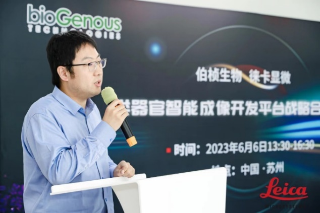 徕卡显微系统应用专员游换阳分享了类器官多维度多模态影像应用报告,针对类器官天然的三维结构的复杂特征,借助徕卡经典宽场、多模态智能成像仪、激光共聚焦和人工智能图像分析软件等,为大家呈现了类器官更清晰的成像效果、更智能的数据分析,让客户感受到了类器官从培养到形态和功能鉴定的全流程方案。