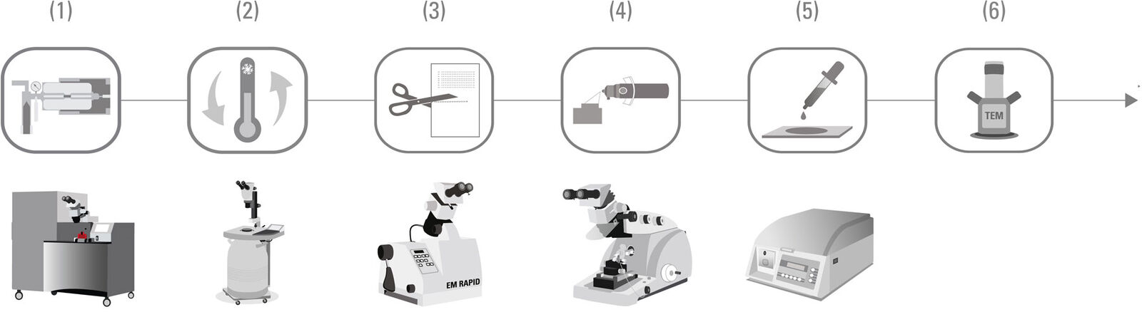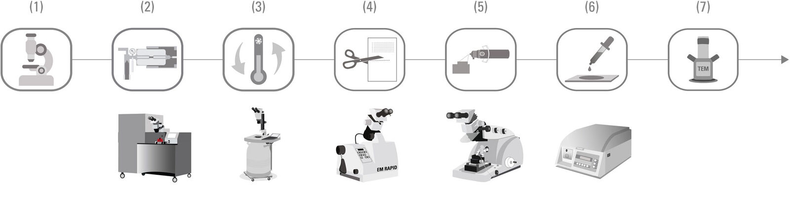 产品 下载 应用 索取报价 EM RAPID 标本修整装置 EM RAPID 标本修整装置 索取报价 产品 产品 下载 应用 ⋯ 电子显微镜样品制备 首页 产品 电子显微镜样品制备 EM RAPID 标本修整装置 用于 TEM、SEM、LM 和药丸研磨的高速研磨系统 凭借EM RAPID高速研磨系统,可在超薄切片前快速精准修整生物与工业样本。这款多功能样本修整设备适用于透射电镜、扫描电镜及光学显微镜应用,并在制药研究中表现卓越:可制备用于分析固体剂量药物中活性药物成分(API)分布的样本,且完全避免涂抹效应。 仅供研究使用 索取报价 EM RAPID 修块设备 使用 EM RAPID 样本修块设备的好处 通过选择 0.1、1、10 或 100 微µm的步长来控制铣刀的进给量 在每分钟 300 至 20 000 rpm之间确定铣削速度 利用自动进样功能轻松接近样品 通过垂直观察嵌入的试样块,实现精确铣削 配备 HEPA 过滤器的低噪音抽排系统可提供安全的工作环境 制备严格平行的样本块表面边缘 通过EM RAPID样本修整仪,可轻松为透射电镜及阵列断层扫描应用制备精准的平行块面边缘。借助样本臂的栅格定位系统,确保任意所需块面尺寸均形成精确90°转角,从而获得平直的连续切片带,使后续切片操作极为简便。EM RAPID是您EM UC7或ARTOS 3D超薄切片机的理想搭档,保障高质量样本切片的轻松获得。 精确平行的样本块表面角度 任意块面尺寸均可实现完美90°转角 碳化钨与金刚石研磨头 通过EM RAPID样本修整仪实现精准的平行块面角度修整 持续监测样本材料状态 EM RAPID研磨系统通过全流程实时监测,有效避免样本材料的非必要去除。样本夹持有的60°旋转功能可实现垂直观察角度,精准定位样本目标区域的距离。无需取出样本即可完成操作,既节约修整时间又确保样本安全。此外,通过配备可选步进精度的进给手轮,可实现高度精准的层削控制。 60°旋转功能实现包埋样本的持续监测 修整过程中无需取出样本,有效避免样本材料丢失风险。 得益于可选步进精度的进给手轮,实现精准分层切削 60°旋转功能实现持续监测 可同步研磨多个药片 EM RAPID的多样本块夹持器显著提升制药研磨应用的效率与通量——支持将载玻片直接置于近红外(NIR)仪器下,实现多个药片的同步制备与检测。 多药片夹 同步进行单个或多个药片样本的脱囊处理 EM RAPID多样本块夹持器 配备优化照明的工作环境确保安全操作 得益于低噪音HEPA过滤抽吸单元与防护罩设计(设备仅在闭合状态下启动),始终维持无颗粒污染的安全生产环境。为实现对样本的清晰观测,EM RAPID研磨系统配置带LED环形照明的体视显微镜,在整个研磨过程中提供持续追踪功能。 防护罩与低噪音HEPA过滤抽吸单元确保安全工作环境 LED环形照明系统实现样本清晰观测 EM RAPID研磨系统防护罩 根据您的生物学问题选择相应工作流程 EM RAPID样本修整仪助您在各类生物实验中获得高质量结果,其应用范围涵盖标准透射电镜、扫描电镜与光学显微镜研究,乃至药物研发流程等多个领域。如需获取针对您研究的详细工作流程解决方案,欢迎下载我们的工作流程手册。 下载 EM 工作流程解决方案手册 | 科学实验室 工作流程解决方案 用于 工业研究|科学实验室 活细胞光电联用 切片断层扫描 3D 工作流程 活细胞光电联用 Show details 活细胞光电联用 本工作流程旨在通过结合活细胞成像与高压冷冻瞬时固定技术,继以冷冻置换包埋、修整及超薄切片处理,解析生物样本的超微结构时序性变化。 活细胞成像 (THUNDER) | 高压冷冻 (EM ICE) | 冷冻置换 (EM AFS2) | 修块 (EM RAPID) | 超薄切片 (UC7) | 染色 (EM AC20) | TEM 中的图像分析 切片断层扫描 3D 工作流程 Show details 切面断层扫描三维工作流程 本方案支持在限定体积内研究生物结构的三维空间组织与相互作用。首先采用高压冷冻技术固定样本,以增强结构保存效果并减少人工假象;继而修整样本用于后续超薄连续切片的阵列断层扫描;经EM AC20染色后,即可在扫描电镜中进行成像分析。 高压冷冻(EM ICE) | 冷冻置换(EM AFS2) | 修块(EM RAPID) | 连续超薄切片(ARTOS 3D) | 染色(EM AC20) | TEM 中的图像分析 想了解更多信息? 请咨询我们的专家。 价格 我需要产品演示、配置或价格信息。 预约演示 我需要现场或远程演示。 服务与支持 我们能为您提供什么帮助? 应用支持 我需要专业帮助/培训来支持我运作机器。 您想获取专人咨询吗? Show local contacts Back to website 您确定要关闭此表格吗? ✕ no yes 常常一起购买 类似产品 ✕