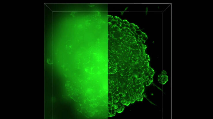 作为新型模式系统,大脑类器官可用于研究人类大脑的发育和疾病。这些自组装式三维细胞结构通常通过多重转基因标记物成像进行表征。这些工作流程中的典型挑战是及时量化分子动力学,同时保持生理条件并在低信号水平下依然能达到样本深度。因此,THUNDER成像系统细胞适合在接近生理条件下研究类器官的发育,因为我们的 LED 光源有助于最大限度地减少光漂白。此外,即使蛋白质信号水平低,也可以定时检测而无需改变样本载体。
