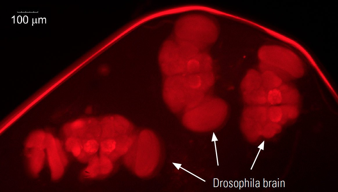 - 使用宽场显微镜对果蝇标本进行更柔和的光照射