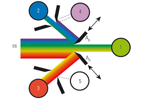 在经典的狭缝光谱仪中,所需的颜色光谱部分是通过一对可单独移动的黑色障碍物选择的,因此可以从整个光谱中选择任何所需的波段。
