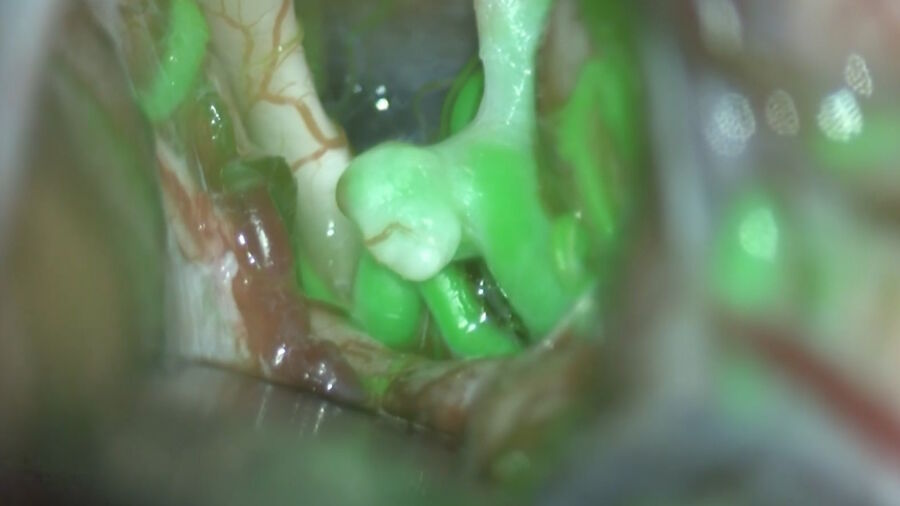 Renner博士介绍,由于采用GLOW800增强现实荧光技术,可以在神经血管手术过程中直接在显微镜下看到血管造影图像,并获得最佳的深度感知。无需回忆和拼接黑白血流视频与自然解剖视图。