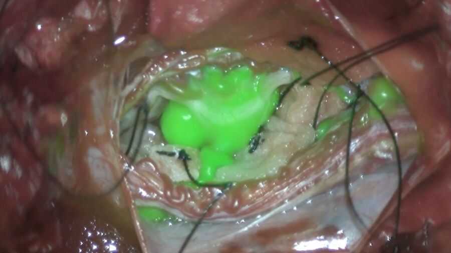 - 2个动脉瘤临床病例:GLOW800支持动脉瘤剪切手术,有助于确认动脉瘤不在血液循环范围内。获得最佳的深度知觉,重要的是要有合适的工作距离和放大倍率。